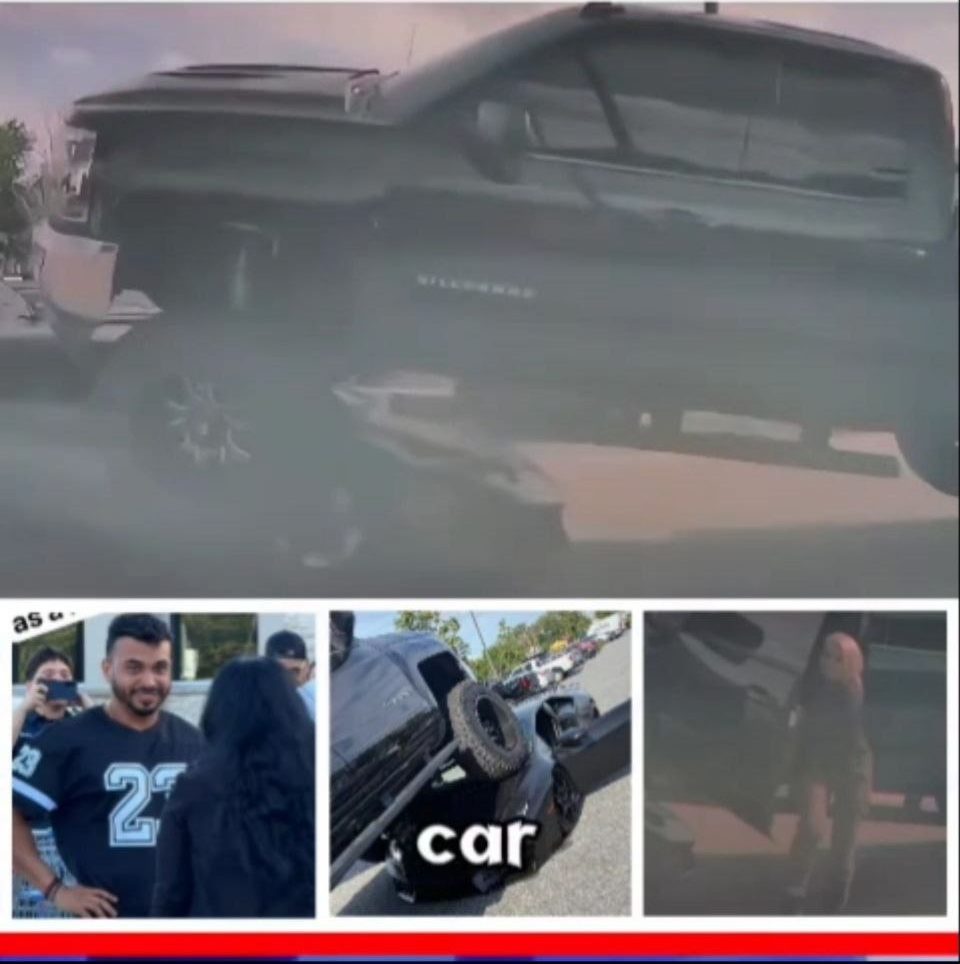 Videos circulating on social media show one of the truck’s large off-road tires resting on top of the Lamborghini’s hood, drawing widespread attention. However, it was the Lamborghini owner’s reaction that captured public interest. In footage shared online, he remained calm and expressed gratitude, stating, “Material things don’t matter to me. Thank God for another day.”