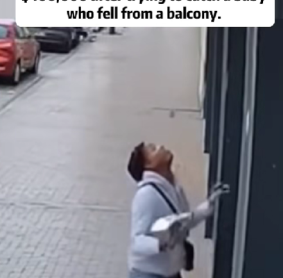 The shocking incident occurred on a quiet weekday morning when Thomas Rivera, a 32-year-old delivery driver, was unloading packages on a city street. Security footage shows him suddenly looking up in horror as a baby slips from a balcony railing above. Without a moment’s hesitation, Thomas drops the package in his hands and sprints forward, arms outstretched, trying to catch the falling child.