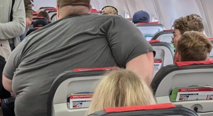 In one row, a man in a gray T-shirt had taken the aisle seat. His broad build made the already tight spacing feel even more compressed, leaving the middle seat noticeably restricted. A few passengers nearby exchanged subtle glances. It wasn’t loud, but the tension was there — the kind that builds quietly when people aren’t sure what will happen next.